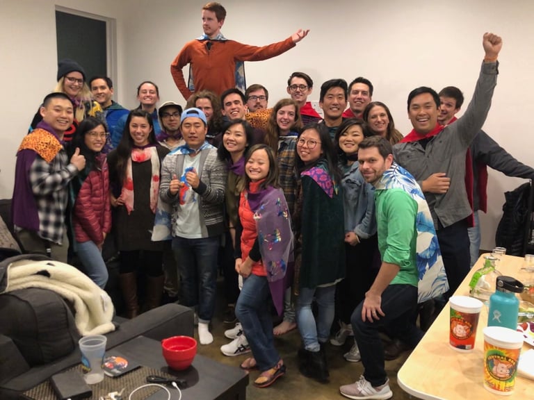 Cape Party started, as many good things begin, as a joke. In 2019 a group of climbing friends was preparing for one friend’s housewarming party. That individual facetiously requested 100 capes be made for the partygoers. The next day two goons went to the clearance rack at Joann’s and proceeded to spend the next 24 hours feverishly cutting and sewing capes. Capes were brought to the party, the group went to some bars and realized strangers wanted capes too, and a tradition was born.